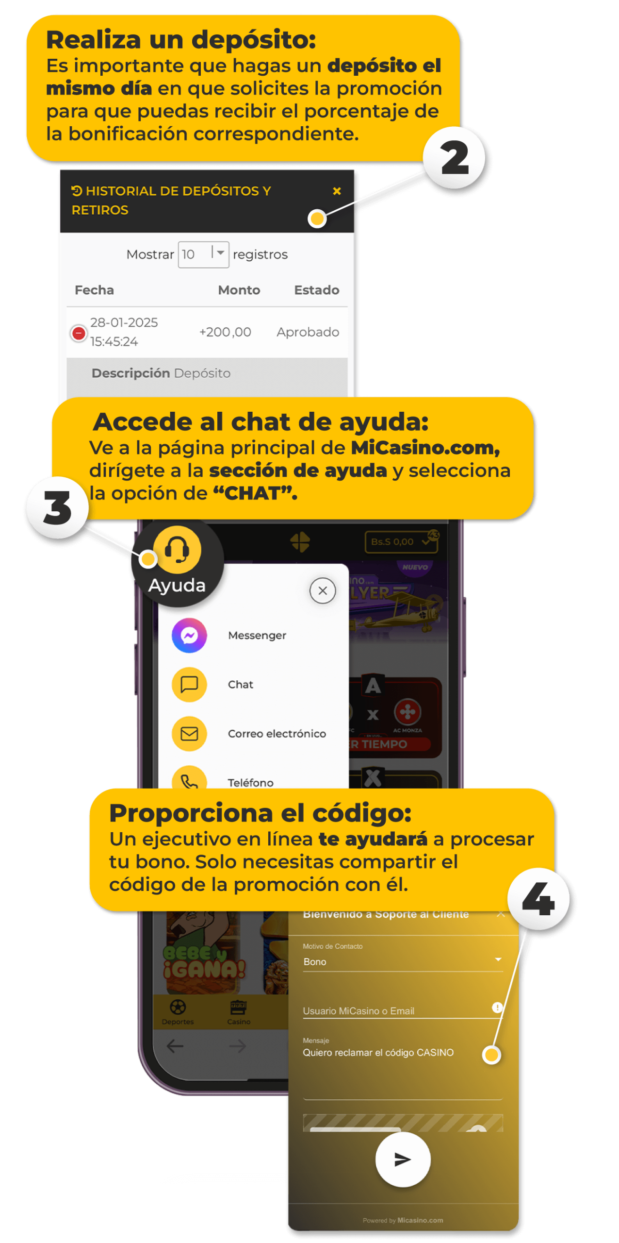 MiCasino ofrece soporte por chat en vivo y correo electrónico las 24 horas del día, los 7 días de la semana, en varios idiomas. El equipo de atención al cliente se asegura de que las consultas y preocupaciones se resuelvan rápidamente, para que disfrutes de una experiencia de juego sin preocupaciones.